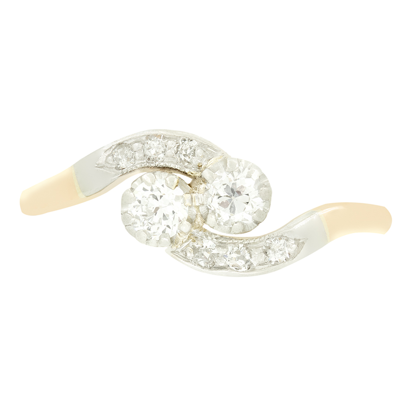 Art Deco 1.40ct Diamond Two Stone Twist Ring, c.1920s