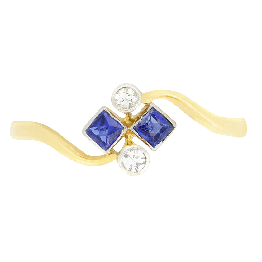 Edwardian 0.30ct Sapphire and Diamond Twist Ring, c.1910s