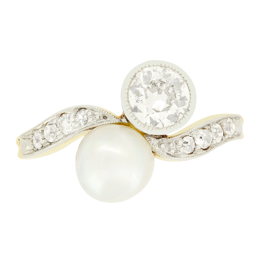 Edwardian 0.65ct Diamond and Pearl Twist Ring, c.1910s
