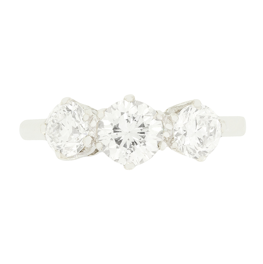 Late Deco 1.75ct Diamond Three Stone Ring, c.1930s