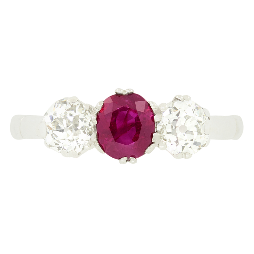 Art Deco 0.75ct Ruby and Diamond Three Stone Ring, c.1920s