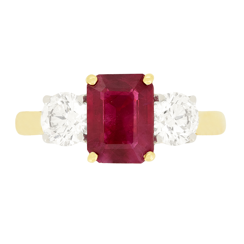 Vintage 2.00ct Ruby and Diamond Three Stone Ring, c.1960s