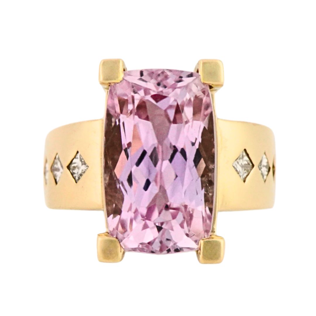 14K Yellow Gold Custom Kunzite and Diamond Ring