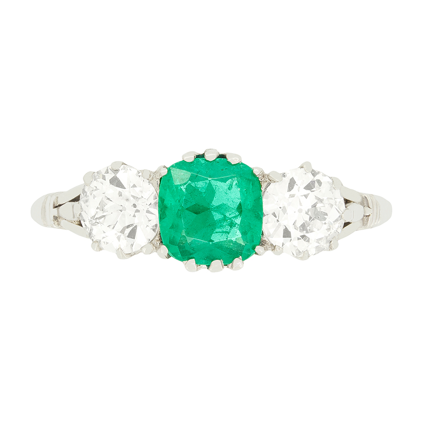 Art Deco 0.65ct Emerald and Diamond Three Stone Ring, c.1920s