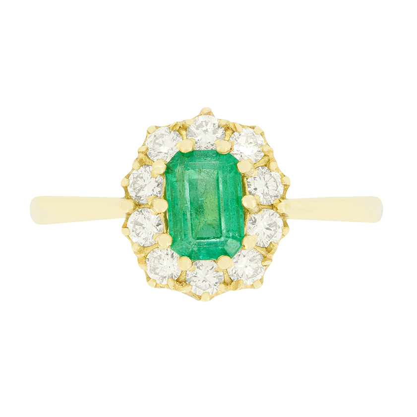 Vintage Style 0.65ct Emerald and Diamond Cluster Ring