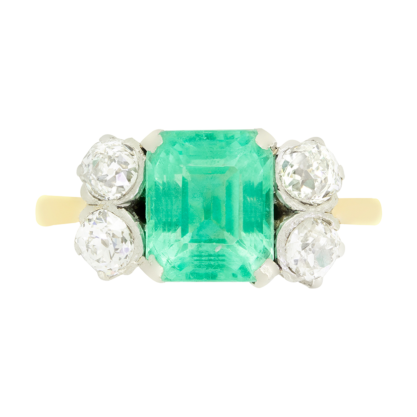 Edwardian 2.00ct Emerald and Diamond Five Stone Ring, c.1910s