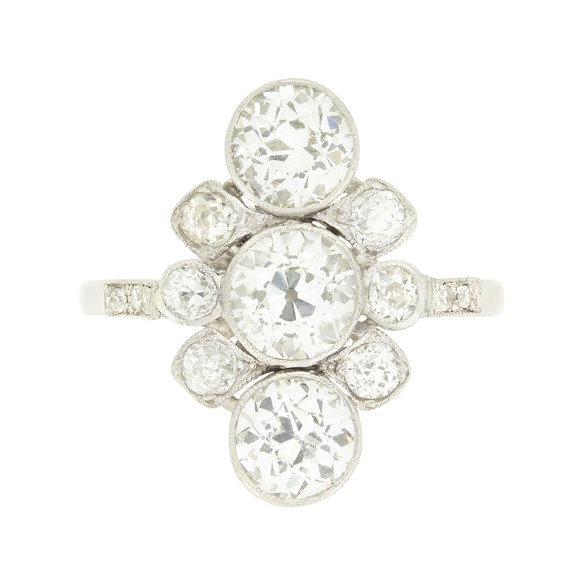 Art Deco 2.75ct Diamond Vertical Three Stone Ring, c1920s