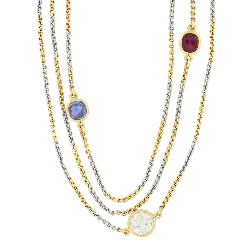 Edwardian 5.95 carat Sapphire, Garnet and Zircon Guard Chain, c.1910s